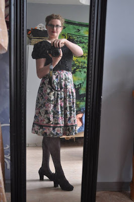 I began my new garderobe with new pants and a flower skirt, this in 1930'- 1940's style. these where already made clothes, only the skirt I made some adjusments to look more 1945's